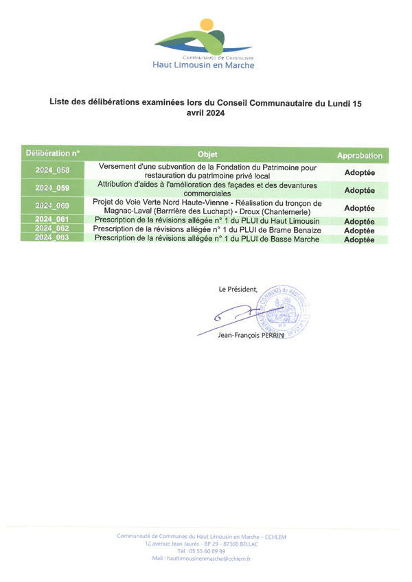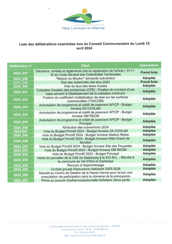 Le 15 avril 2024 les élus du conseil communautaire se sont réunis à l’Espace du Rocher à Magnac-Laval.