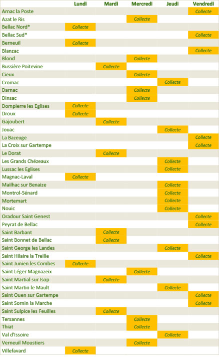 Jours de collecte des ordures ménagères 2022