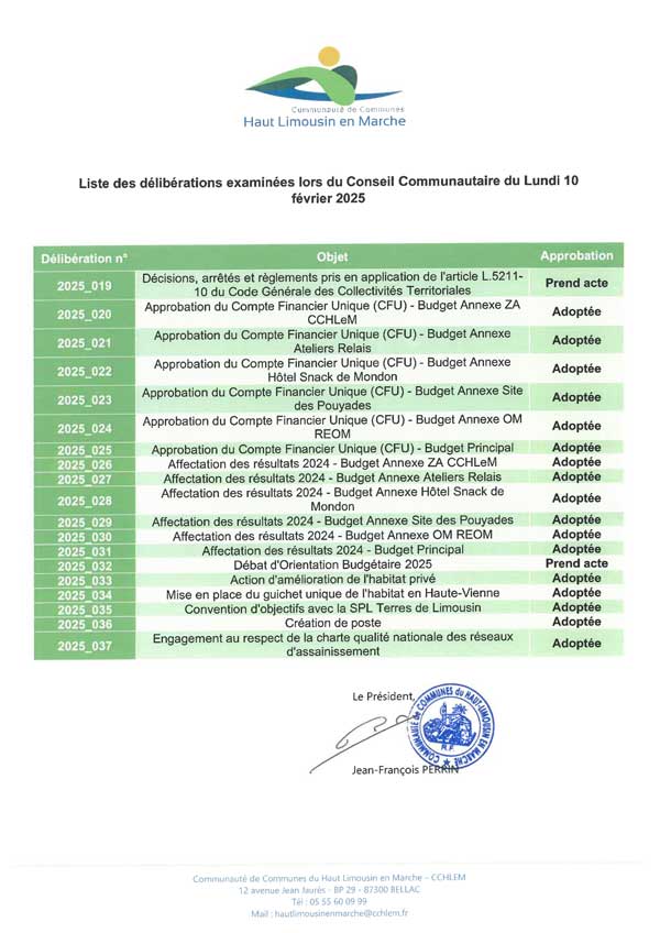 Retrouvez ci-dessous la liste des délibérations, et les délibérations :