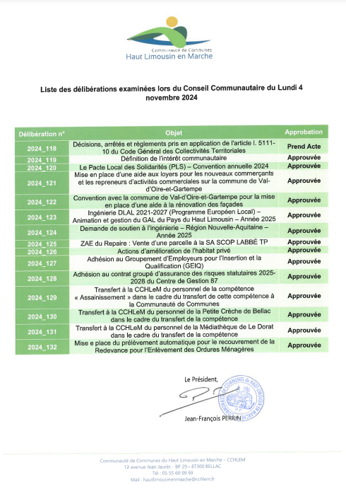 Retrouvez ci-dessous la liste des délibérations, et prochainement les délibérations :