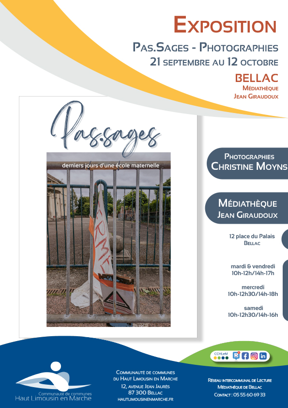 Cette exposition, à l’invitation de la Communauté de Communes du Haut Limousin en Marche aura lieu du samedi 21 septembre au samedi 12 octobre 2024 à la médiathèque intercommunale Jean Giraudoux à Bellac.