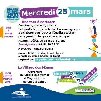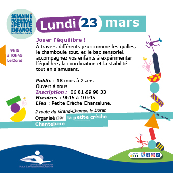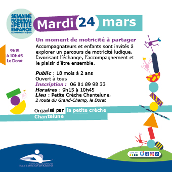 La Semaine de la Petite Enfance, une invitation pour les familles et professionnels du territoire de la Communauté de Communes du Haut Limousin en Marche.